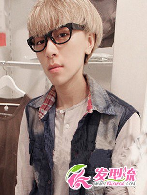 这款蘑菇头是根据女版蘑菇头演变而来,具有强烈视觉效果的染发发色带给人们一种视觉上的享受!整个头发修剪出像蘑菇一样的形式覆盖在好看的锥子脸上,具有层次纹理的齐刘海微微的遮住眼帘,一副黑框眼镜让男生看上去活跃动感,具有90后的青春气息!