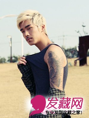 看男生那不羁的表情,瞬间秒杀了路人甲乙丙丁,怎么样帅气吗?夺人眼球的金黄色染发让整体增加了几分浓郁的摇滚气息,独特的裁剪让头发彰显出他野性好动的一面!偏分斜刘海延续到前额,金黄色与他浓黑的眉毛形成了较大的反差,非常潮流!