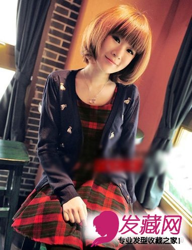 BOB头升级版的内扣短发,灵动乖巧,齐刘海的搭配更可爱萝莉,再配合奶茶系的发色更是萌萌惹人爱!