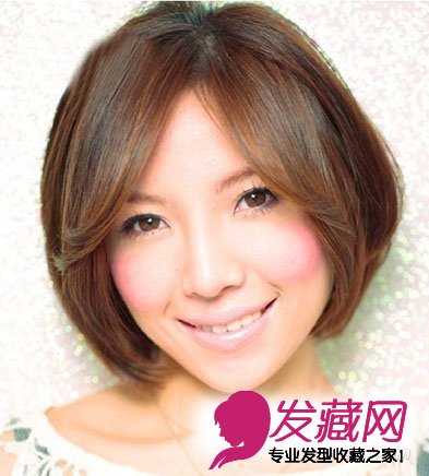 这款直短发给人知性甜美的感觉,A型的长刘海动感有气质,脸颊两边服帖的秀发修饰过宽的脸型,栗色的发色增添知性女人味。