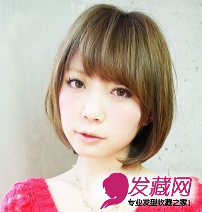 亚麻色绿色的直短发,十分显潮流,厚重感的碎刘海打造娇俏脸型,内扣的发尾增添文雅淑女味。