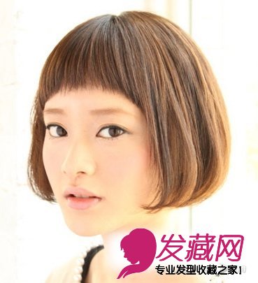 内扣的直短发灵动可爱啊,短短的圆形弧度刘海突出明亮眼睛的同时又让你变得更个性可爱,挑染的亚麻色的发色时尚洋气。