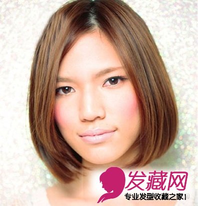 顺直的短发给人清爽的感觉,两侧的头发紧贴脸部修饰轮廓,侧分的中长刘海拉长脸型。