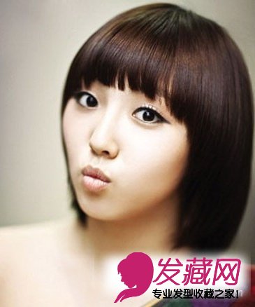 齐刘海的短直发蘑菇头,整款发型圆润可爱,适合圆脸型的女生哦,刚好的过眉的刘海也能帮助长脸型女生修饰脸型。