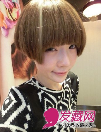 小编点评:带点小弧度的齐刘海给人感觉可爱俏皮,头顶的短发蓬松饱满,给人感觉更加自然有型,两边的齐短发显得非常干净利落,更多一丝帅气开朗。