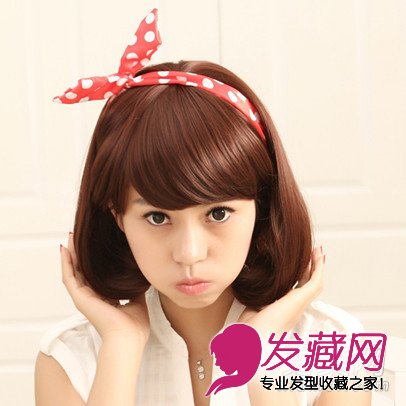 头顶搭配蝴蝶结,一款很好的卖萌发型哦 半圆的刘海只露出一条眉毛,深棕色的颜色~ 让你更有韩剧女主角的范