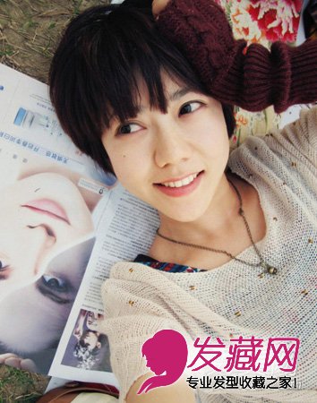 一款中性中又不失甜美的短发,齐刘海的蓬松蘑菇头发型,打造出自然的空气感。这款短发比较适合鹅蛋脸或是小脸的女生。