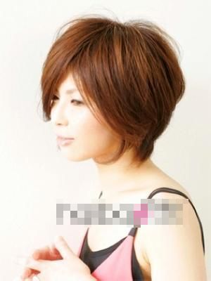 9、别致长刘海 ×浅棕色:性感小颜短发
