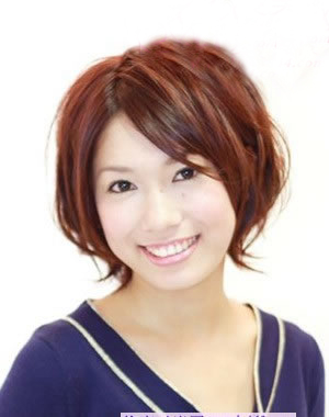 自然感觉的斜刘海 再加上当下流行的棕红色染发 运用,轻松打造时髦靓丽的年轻女孩LOOK