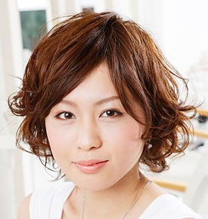 自然蓬松的短卷发发型,略微斜分和内卷弧度的刘海 设计,不会显得呆板。