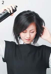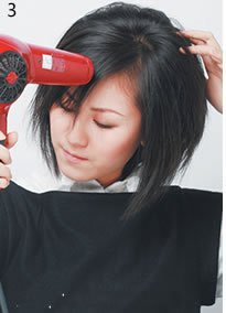 步骤三:用微风定型刘海 及两侧发梢,将其吹得更服帖。