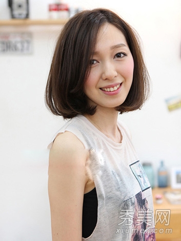 这款韩国女生短发在头发长度上比一般女生要长很多,但在女生依然属于短发——梨花头长短发。偏分梨花头发式,围绕脸颊的秀发,全面盖住脸颊的造型,使发型更柔美秀气,温婉成熟的淑女气质,很有女人魅力。