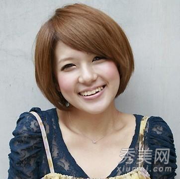 斜刘海BOBO头,自然的亚麻色染发加上厚重的刘海,可爱升级,内烫式设计,轻松打造修颜效果。