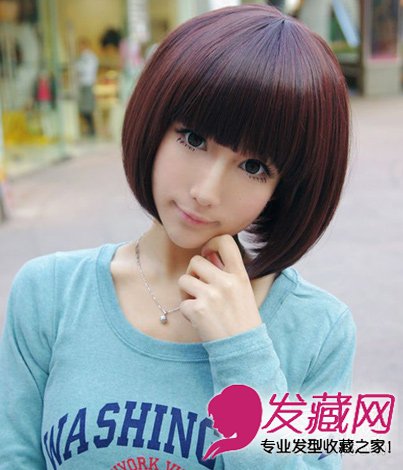 很可爱的波波头哦!发丝很柔顺,很有光泽。平刘海设计,很可爱。