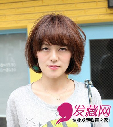 不是很平整的齐刘海有些蓬松,并且微微内扣,配合整个蓬松的波波头,更是将有些方形的脸修饰。一款发型让你同时拥有修脸和减龄的效果,非常值得一试哦。