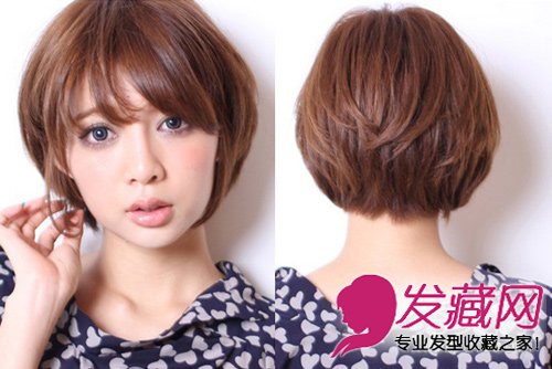 深邃的深棕色短发明亮耀眼,在耳朵上方故意做出的蓬松感觉让脸型更加圆润丰满,细微的烫发效果搭配如风吹动般的轻盈刘海,简单又随意。