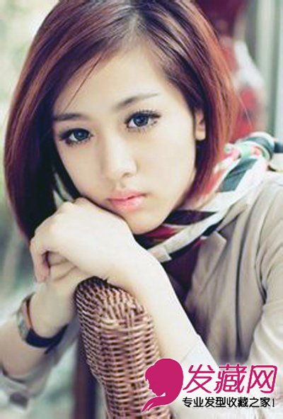 侧分的刘海,红棕色系的靓丽短发,漂亮又时尚,很职场女白领的一款发型。