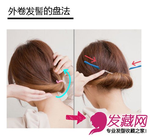 step4:将马尾塞进发束里面用用一根细长的发钗别起。