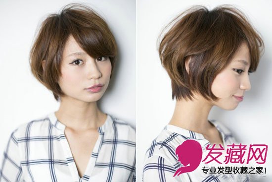 稍微的烫发让短发有可爱的弧度,加上深亚麻色的头发很衬肤色,打造出了时尚OL造型。