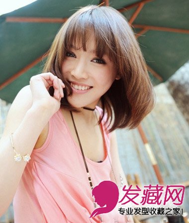 这款韩式中短发发型给人干净利落的感觉,将发尾内扣烫卷,齐肩的中短发发型,斜刘海发丝修饰了女生长脸脸型。