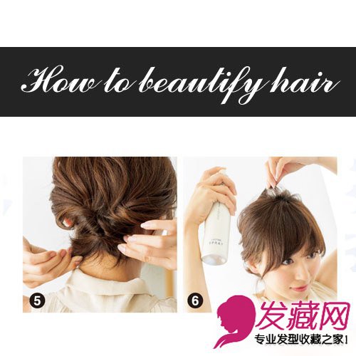 6.通过用手指扯动头顶部的头发,使整个发型得以平衡。并且可以喷上适量的喷雾使之固定,防止倒下来。