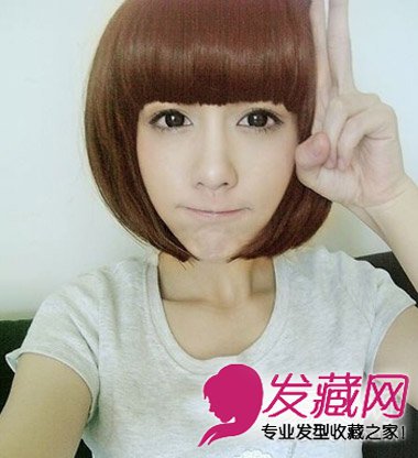 这款蓬松有质感的波波头造型,修建的整齐地厚重刘海搭配微微内扣的发梢,完美的修饰了女生的鹅蛋脸。