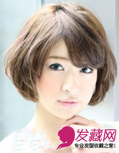 凌乱蓬松的短发波波头造型,偏分的刘海搭配微卷的发丝衬托女生白皙的脸蛋,同时也起到了很好的修颜效果。