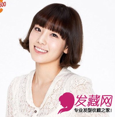 这款女生短发烫发也很受MM们的喜爱,薄透的齐刘海发丝修颜又不显厚重,是大脸女生适合的发型,清新修颜。