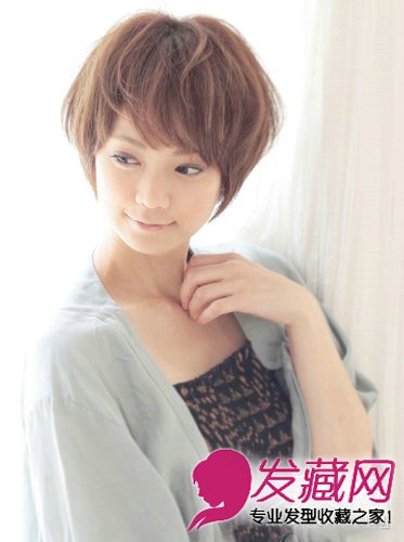 带有散漫感的这款短发发型款式很好地将圆脸掩饰了起来,起到了绝佳的小脸效果。带有毛躁感的时尚发型就算平时早上时间不足也很容易打理,很适合早上经常睡过头没时间打理发型造型的OL们。