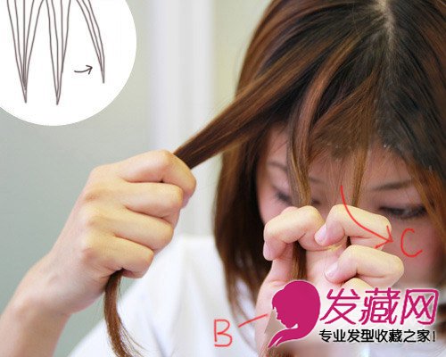 step3:再将B束头发分成两部分。