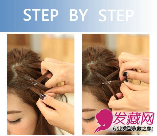 右侧的头发放进相交处的中间位置,然后再将新的左面的头发往右相交。