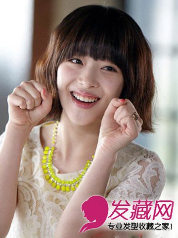 齐刘海短发是一款非常适合大脸女生的气质短发,短发烫发微微蓬松的效果加上齐刘海,很有瘦脸的效果。