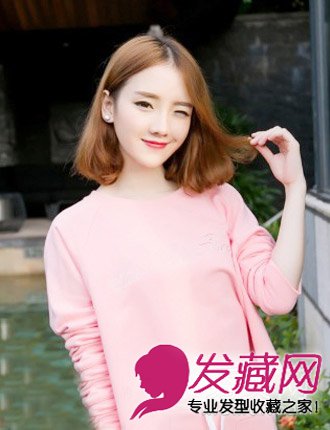 深棕色的发色,比浅棕色更能提亮美眉的肤色,齐肩的长度,一侧的头发放在耳后,更显悠闲闲适,可爱的小脸,突显清新的甜美可爱范。