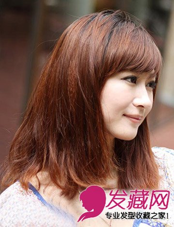 一头橘红色系的头发,可以增添你的时尚品位哦,有点外卷的发尾,时尚又显个性,修颜的平刘海,搭配甜美的笑脸,尽显青春活力范。