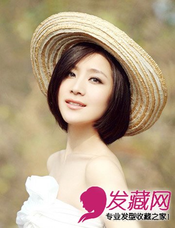 柔顺的头发,剪成了飘逸的齐肩短发,帅气又显清爽,偏分的打理,活泼不呆板,加上清新优雅的笑脸,个性的大帽子,尽显名媛淑女气质。
