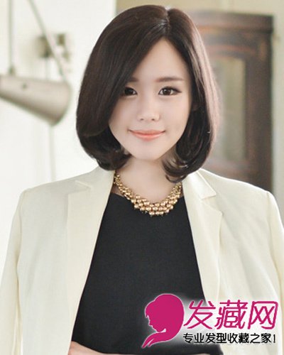 斜刘海起到很好修饰脸型的作用,而内扣的发尾,修颜时尚。