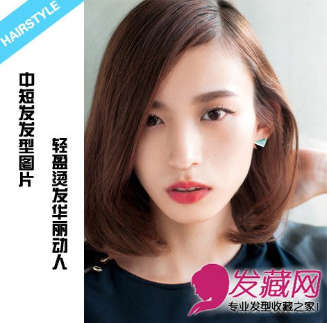 发型点评:夸张的一九分刘海适合于希望打造出超模气质的MM,中短发微微内扣,衬托出精致的脸部线条。