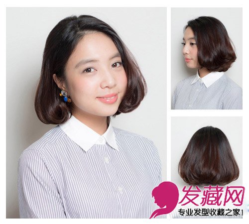 侧分的波波头造型看起来简约大气,设计重点在于发尾层次的烫发蓬松可爱,深色发色让肤色看起来超级的粉嫩。