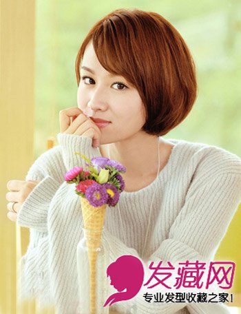 虽然是一头干净利落的短头发造型,却不失柔美恬静感,三七分刘海充满轻熟气质,米色毛衣穿搭,尽显淑女甜美气息。