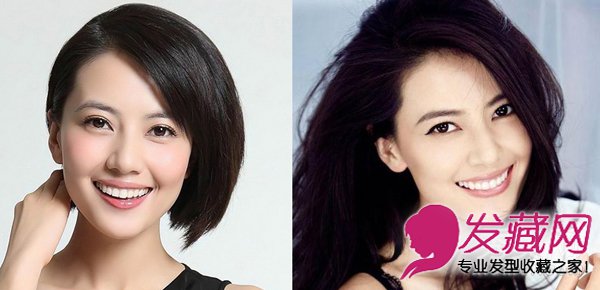 国民女神高圆圆也是短发长发两相宜,大侧分波波头知性优雅,蓬松微乱长卷发则显性感,脸颊垂落的长刘海在发尾自然卷曲,轻松遮住上镜小脸。