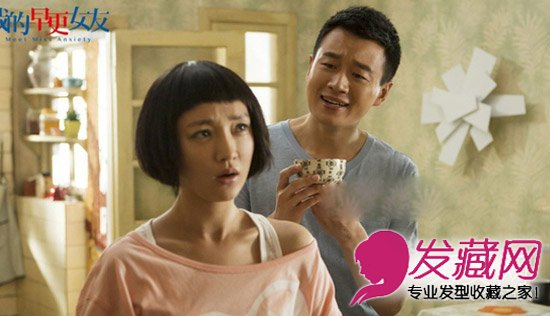 蘑菇头很常见,但是搭配上超短刘海呢?周迅在《我的早更女友》中就以这样的发型出现,超短刘海露出眉毛和额头,显得有些呆萌。碎碎的齐刘海好像是自己剪的一样,发尾也是乱乱的不修边幅,完全的宅女形象!