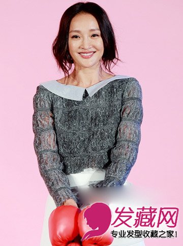 电影中的周迅,发型跟着角色走,而卸下电影角色的她,在发布会上演绎出的多是轻熟、温柔的一面。将中长发盘起,塞在头发里,轻松变成短发,发尾微烫的纹理实现A字形伞状轮廓,不经意的凌乱增添发型惬意感。