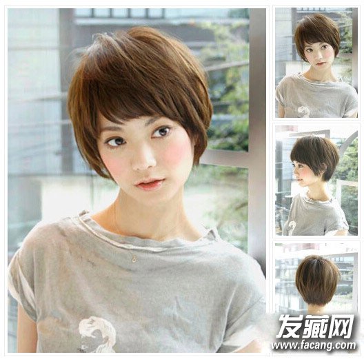 发型点评:棕黄色短发层次感十足,沿着脸颊剪裁出细碎的发感,这时略带肉肉感的脸蛋、呆萌的表情可爱俏皮。