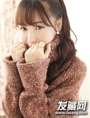 不同于以往的过于呆萌的齐刘海发型,这款充满着韩式空气感的刘海更多了一些温柔气息,卷发扎起高马尾青春甜美,超有少女感。