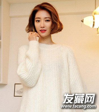 这款显瘦的短发设计也是很受MM们追捧的一款发型,有点波波头式的蓬松效果是最佳的减龄设计,搭配刘海修颜,甜美清新。