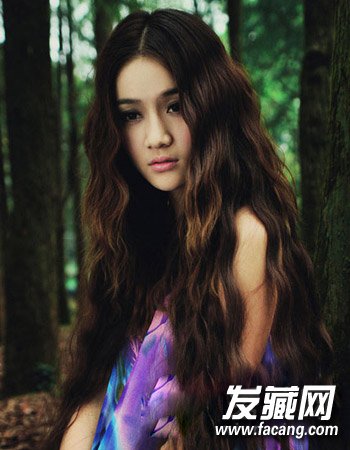 如精灵一般唯美的瀑布长发发型展现出别致的唯美与仙气,气质的中分勾勒出鹅蛋脸的精致来,波浪发型十分抢眼。
