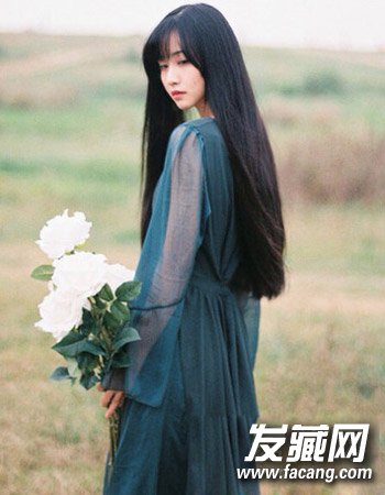 如瀑布一般墨黑的及腰长发不仅简单而且有简约大气,凸显出一种不食人间烟火的仙气感,颇显森女气质。
