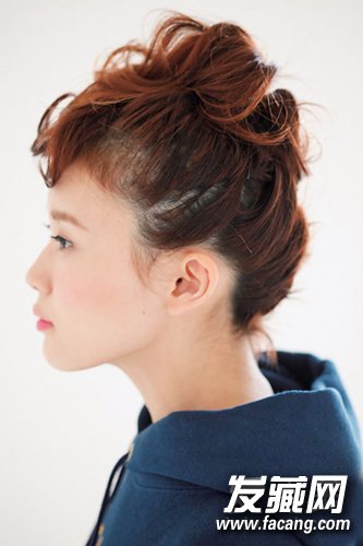 这样将头发盘起来会给人一种好似长发的视觉效果,手抓过的痕迹看起来更有女人味。