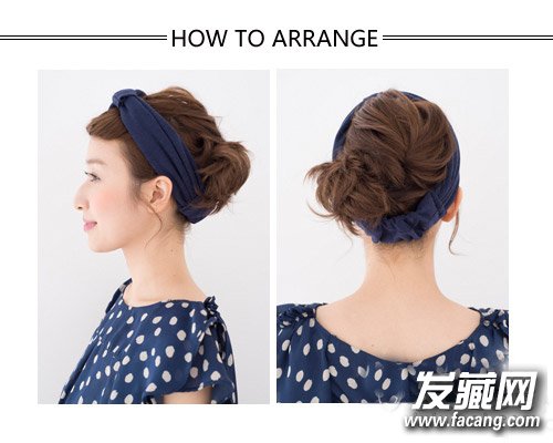 通过扭转侧扎发让短发变得清爽可人,搭配上优雅的宝蓝色发带提升扎发时尚气质与优雅气息。
