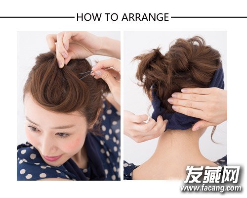 step 6:最后搭配上宝蓝色发带就完成这款扎发。